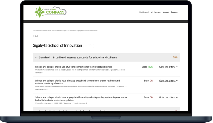 Computeam Compass supports schools and trusts in measuring their alignment with the Department for Education’s digital and technology standards.